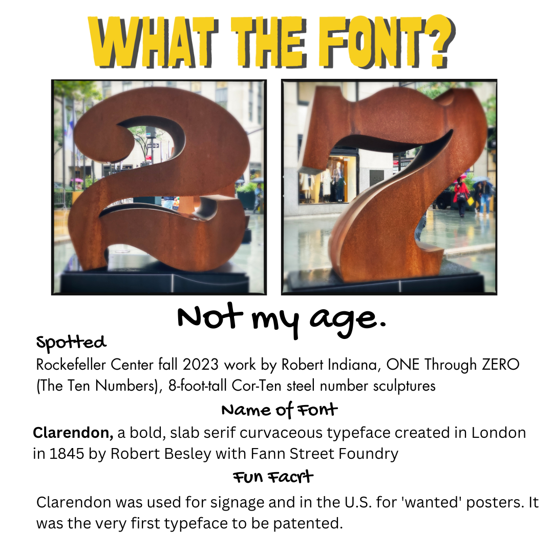 Spotted in Rockefeller Center in the Fall of 2023 giant numbers as an installation of works by Robert Indiana, ONE Through ZERO (The Ten Numbers), ten 8-foot-tall Cor-Ten steel number sculptures.